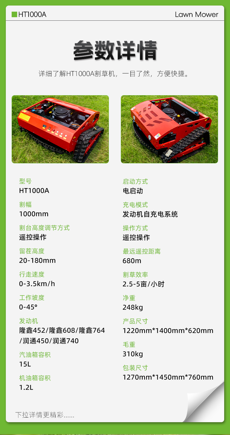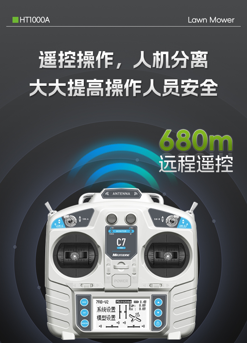 HT1000A遙控割草機680m遠距遙控,割草效率可達5畝/小時