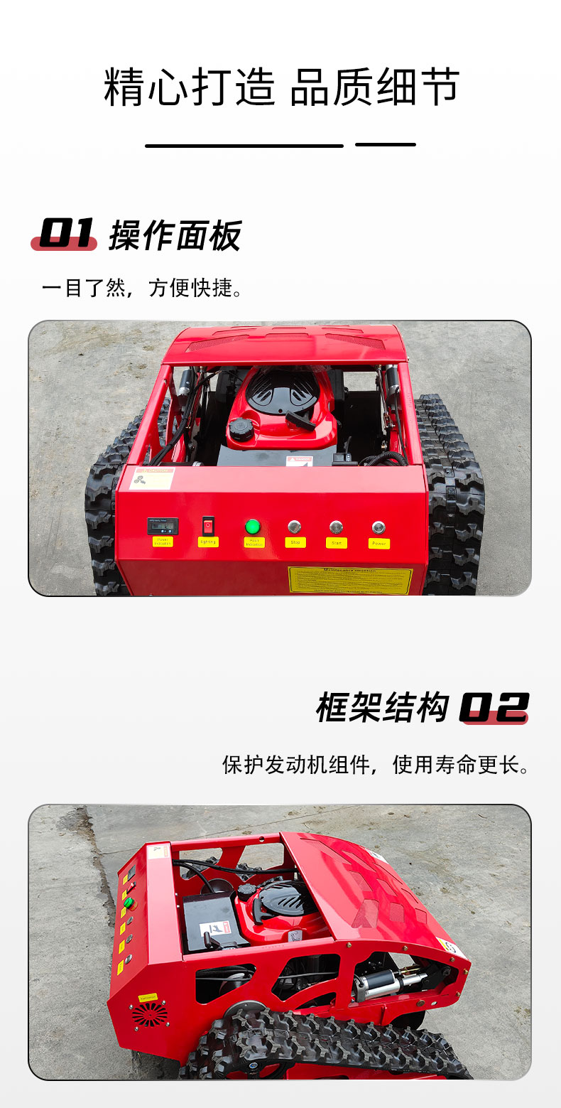 HT550A遙控割草機?采用意大利旋切技術(shù)工藝和歐美作業(yè)環(huán)境結(jié)合的設(shè)計原理,智能除草,簡單方便。