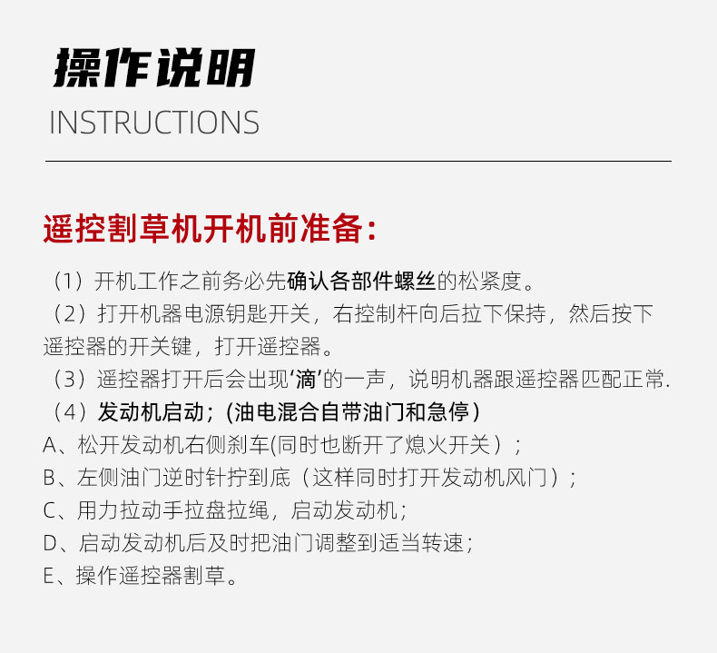 HT550A遙控割草機選用重慶隆鑫品牌四沖程發(fā)動機,標(biāo)準(zhǔn)作業(yè)1小時可除草1300-2000平方米果園除草效率高。